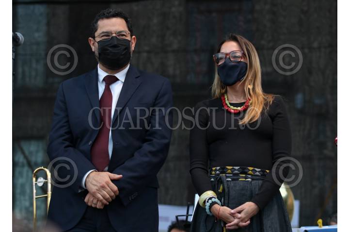 CIUDAD DE MÉXICO, 04NOVIEMBRE2021.- Martí Batres Guadarrama, Secretario de Gobierno y Vanessa Bohórquez López, secretaria de Cultura de la Ciudad encabezaron la inauguración de la VII fiesta de las culturas indígenas, pueblos y barrios originarios de la Ciudad que se llevará a cabo durante dos semanas en la Plancha del Zócalo Capitalino. FOTO: ANDREA MURCIA /CUARTOSCURO.COM