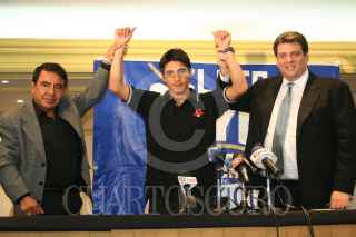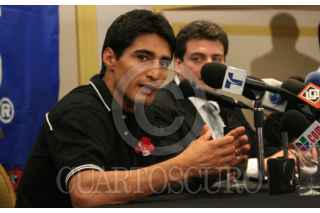 MÉXICO, D.F. 20OCTUBRE2006.- Erick, el "Terrible" Morales en conferencia de prensa anunció que está listo para el campeonato mundial. Su padre y entenador José Morales estuvo presente. FOTO: PAOLA HIDALGO/CUARTOSCURO