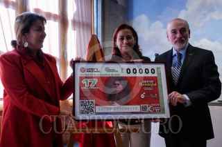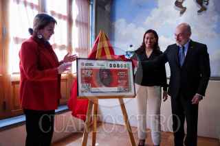CIUDAD DE MÉXICO, 05NOVIEMBRE2021.- Margarita González Saravia Calderón, Directora General de Lotería Nacional; Luis Felipe Bravo Mena, representante del gobierno del estado de Guanajuato en la Ciudad de México, y la escritora Angélica Solchaga Moreno, autora del libro “Concepción Besteguí. Vida y Obra”, encabezaron la presentación del billete de lotería No. 2705 conmemorativo al "Bicentenario del Natalicio de Concepción Béistegui”. FOTO: GALO CAÑAS/CUARTOSCURO.COM