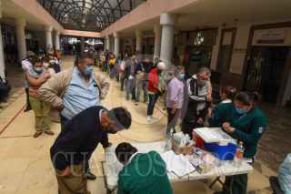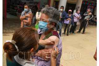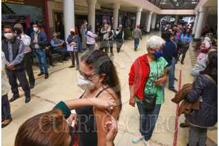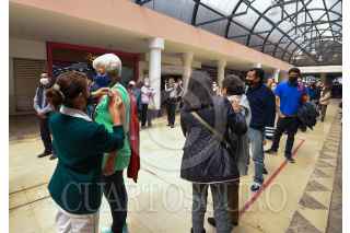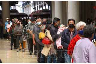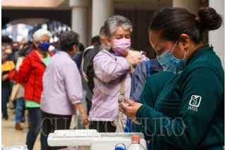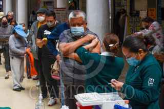 TOLUCA, ESTADO DE MÉXICO, 05NOVIEMBRE2021.- Una larga fila se observó en el módulo de vacunación contra la Influenza instalado en la Concha Acústica en Toluca, por parte de personal del Instituto Mexicano del Seguro Social (IMSS) personas mayores de 60 años llegaron desde temprana hora y esperaron a que les fuera aplicada si vacuna. FOTO: CRISANTA ESPINOSA AGUILAR /CUARTOSCURO.COM
