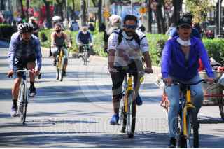 CIUDAD DE MÉXICO, 07NOVIEMBRE2021.- Cientos de personas arriban a Paseo de la Reforma para participar en el ya tradicional ciclotón dominical donde comparten la mañana a lado de sus familias mientras utilizan la bicicleta. FOTO: DANIEL AUGUSTO /CUARTOSCURO.COM
