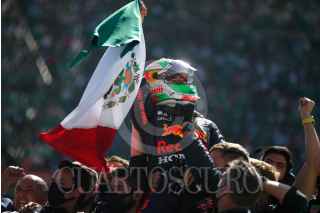 CIUDAD DE MÉXICO, 07NOVIEMBRE2021.- El piloto mexicano de la escudería Red Bull, Sergio "Checo" Pérez, logró subir al podio del Gran Premio de México de la Fórmula 1 al alcanzar la tercera posición, logró que ningún piloto nacional había conseguido. FOTO: CUARTOSCURO.COM