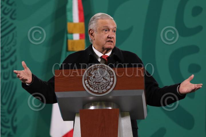 CIUDAD DE MÉXICO, 08NOVIEMBRE2021.- Andrés Manuel López Obrador, Presidente de México, encabezó la mañanera en Palacio Nacional, en donde presentó el ¿Quién es quién?, en los precios de las gasolinas y gas LP, dieron detalles del Buen Fin, y presentaron los videos de los avances de la obras, como el Aeropuerto Internacional Felipe Ángeles. Acompañaron al mandatario: Tatiana Clouthier Carrillo, secretaria de Economía; Raquel Buenrostro Sánchez, titular de Servicio de Administración Tributaria (SAT); Ricardo Sheffield Padilla, procurador Federal del Consumidor; José Héctor Tejada Sharp, presidente la Confederación de Cámaras Nacionales de Comercio (CONCANACO); Vicente Yáñez Solloa, presidente la Asociación Nacional de Tiendas de Autoservicio y Departamentales (ANTAD), y Jesús Cantú Escalante, titular de la Unidad de Normatividad, Competitividad y Competencia. FOTO: MOISÉS PABLO/CUARTOSCURO.COM