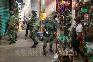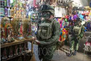 ACAPULCO, GUERRERO, 08NOVIEMBRE2021.- Soldados del Ejército Mexicano realizaron un operativo de proximidad con la población en el mercado central de Acapulco, con la finalidad de invitarlos a realizar denuncias sobre delitos qué se cometen, como la extorsión. Los elementos realizaron un perifoneo y repartieron volantes. FOTO: CARLOS ALBERTO CARBAJAL/CUARTOSCURO.COM