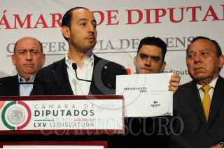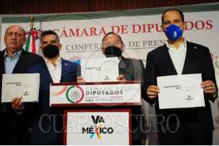 CIUDAD DE MÉXICO, 08NOVIEMBRE2021.- Los coordinadores de las bancadas del PRI, PAN y PRD en la Cámara de Diputados Rubén Moreira, Jorge Romero y Luis Espinosa Chazaro y los presidentes nacionales de dichos partidos, Marko Cortés, Jesús Zambrano y Alejandro Moreno, todos representantes de la alianza Va Por México, presentaron su propuesta de presupuesto para el 2022 de cara a la discusión que sostendrán los legisladores durante esta semana en la Cámara baja. FOTO: DANIEL AUGUSTO /CUARTOSCURO.COM