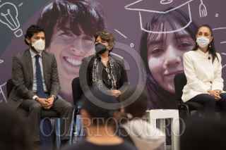 CIUDAD DE MÉXICO. 08NOVIEMBRE2021.- En el auditorio Jaime Torres Bodet del IPN, la jefa del Gobierno, Caludia Sheinbaum Pardo, la titular de la SEP, Delfina Gómez así como el director del Politécnico, Arturo Reyes Saldoval, encabezaron el evento donde anunciaron la entrega de la Beca Benito Juárez, a jovenes de nivel bachillerato. FOTO: VICTORIA VALTIERRA/CUARTOSCURO.COM