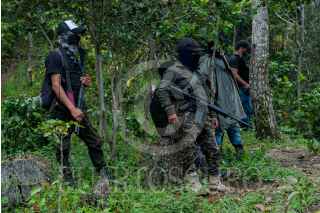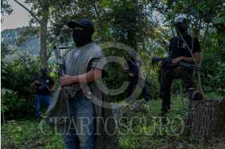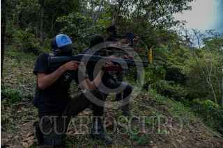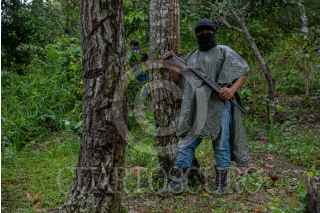 PANTELHO, CHIAPAS, 09NOVIEMBRE2021.- Cubriendo su identidad con gorras y pasamontañas, integrantes del llamado grupo, El Machete de la comunidad del municipio de Pantelhó en Chiapas, se mantiene levantado en armas. Los autodefensas, reclaman inoperancia de las autoridades del gobierno en cuanto a los temas de la violencia y seguridad infringida por parte del grupo criminal, Los Herrera en sus comunidades. Cabe mencionar el grupo de civiles armados desconocieron y desterraron a las autoridades federales desde el pasado 26 de julio. FOTO:JOSÉ SANTIZ /CUARTOSCURO. COM