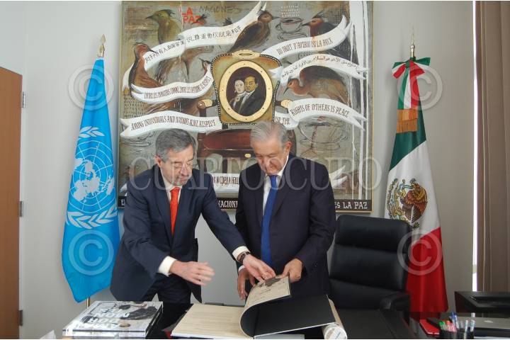 NUEVA YORK, ESTADOS UNIDOS, 09NOVIEMBRE2021.- Andrés Manuel López Obrador, Presidente de México, ofreció un discurso ante el Consejo de Seguridad de la ONU, ahí propuso un "Plan Mundial de Fraternidad y Bienestar". Lo acompañaron el canciller Marcelo Ebrard Casaubon, y Juan Ramón de la Fuente, representante permanente de México ante la Organización de las Naciones Unidas. FOTO: PRESIDENCIA/CUARTOSCURO.COM