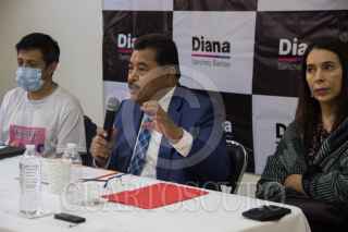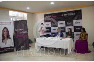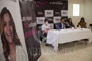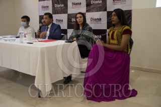 CIUDAD DE MÉXICO. 09NOVIEMBRE2021.- Rodrigo Colchado, Javier Sánchez Becerra, Jana Jiménez Barrios y Miroslava Celaya, familiares y defensores de Diana Sánchez Barrios, dirigente de comerciantes ambulantes agremiados;en conferencia de prensa, esta mañana. FOTO: VICTORIA VALTIERRA/CUARTOSCURO.COM