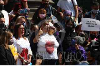 CIUDAD DE MÉXICO, 09NOVIEMBRE2021.- Xóchil Bravo espinosa, diputada d e Morena por Tlalpan encabezó la protesta de colectivas de "buscadoras" para exigir respeto a las familias de personas desaparecidas y víctimas, que se llevó a cabo en las escalinatas del congreso de la Ciudad. FOTO: ANDREA MURCIA /CUARTOSCURO.COM