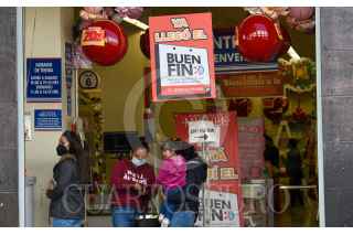 TOLUCA, ESTADO DE MÉXICO, 09NOVIEMBRE2021.- Comercios del Valle de Toluca se encuentran listos para el Buen Fin que se llevará a cabo del 10 al 16 de noviembre, fueron colocados letreros en donde se indica que comercios participan y que descuentos tendrán; autoridades hicieron un llamado a la población para hacer un consumo responsable y razonado durante estos días así como continuar con todas las medidas higiénicas para evitar contagios por COVID-19. FOTO: CRISANTA ESPINOSA AGUILAR /CUARTOSCURO.COM
