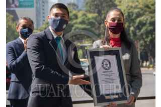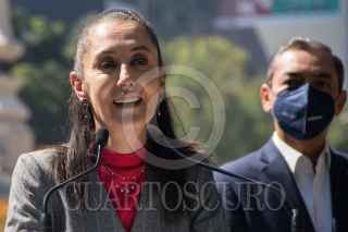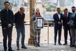 CIUDAD DE MÉXICO, 10NOVIEMBRE2021.- Este medio día al pie del Ángel de la Independencia, se entrego a la Jefa del Gobierno de la Ciudad, Claudia Sheinbaum Pardo; un reconocimiento de Record Guinnes por ser la Ciudad en el Mundo con mas puntos WiFi y se anunció que a partir del próximo año todas las escuelas públicas contaran con servicio gratuito de Internet. FOTO: VICTORIA VALTIERRA/CUARTOSCURO.COM