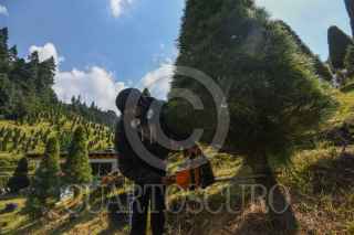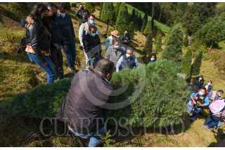 XONACATLÁN, ESTADO DE MÉXICO, 10NOVIEMBRE2021.- Inició el corte y temporada de venta de árboles de Navidad 2021 en las comunidades de San Miguel Mimiapan y Santiago Tecojotillos en Xonacatlán, con 99 hectáreas dedicadas a la producción de árboles de Navidad, de las especies de Oyamel, Ayacahuite y Pseudotsuga, los 78 productores generan alrededor de 1000 empleos en la comunidad; las plantaciones tienen listos más de 50 mil árboles para su corte y comercialización esperando una derrama económica de más de 30 millones de pesos. El precio de los árboles va desde los 300 pesos hasta los 1800 pesos. FOTO: CRISANTA ESPINOSA AGUILAR /CUARTOSCURO.COM