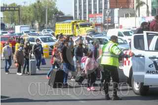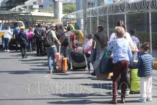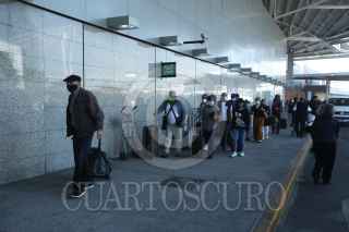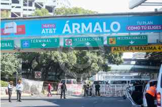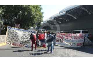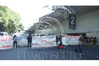 CIUDAD DE MÉXICO, 10NOVIEMBRE2021.- Trabajadores aduanales que fueron despedidos bloquearon las vialidades de la Terminal 1 del Aeropuerto Internacional de la Ciudad de México ya que señalan que fueron despedidos injustamente. FOTO: ARMANDO MONROY/CUARTOSCURO.COM