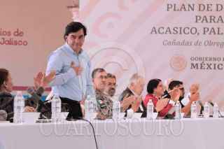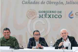 TEMACAPULÍN, JALISCO, 10NOVIEMBRE2021.- Andrés Manuel López Obrador, Presidente de México, presidió el Plan de desarrollo integral para los pueblos de Acasico, Palmarejo y Temacapulín en la plaza principal de Temacapulín,, Cañadas de Obregón. Lo acompañaron Luis Cresencio Sandoval, secretario de la Defensa; Rosa Icela Rodríguez, secretaria de Seguridad y Protección Ciudadana; Jorge Arganis Díaz Leal, Secretario de Infraestructura, Comunicaciones y Transportes; Adán López Augusto, secretario de Gobernación; Jesús Ramírez Cuevas, Vocero de la Presidencia, y Marcelo Ebrard Casaubon, secretario de Relaciones Exteriores. FOTO: PRESIDENCIA/CUARTOSCURO.COM