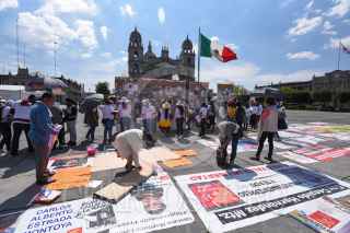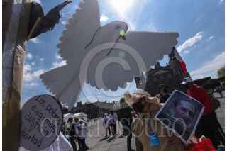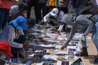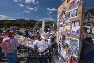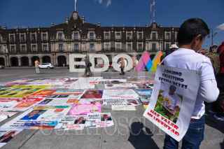 TOLUCA, ESTADO DE MÉXICO, 11NOVIEMBRE2021.- Integrantes de Haz Valer mi Libertad realizaron un periódico mural en la Plaza de los Mártires con recortes de todas las actividades que han realizado durante estos últimos meses pidiendo amnistía para sus familiares presos en diversos penales del Estado de México. FOTO: CRISANTA ESPINOSA AGUILAR /CUARTOSCURO.COM