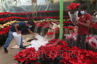 CIUDAD DE MÉXICO, 11NOVIEMBRE2021.- Productores de la flor de nochebuena comenzaron la venta de esta flor en el Mercado de flores y plantas "Cuemanco"; el precio oscila de 25 pesos a 100 pesos dependiendo de la variedad y el tamaño. Las variedades que se encuentran en este mercado son la lupin, roja, blanca, dorada, limón, rehilete y rosa, la siembra de la noche buena dura aproximadamente 8 meses y los invernaderos que los producen se encuentran en las alcaldías de Tláhuac, Tlalpan y Xochimilco. FOTO: GRACIELA LÓPEZ /CUARTOSCURO.COM