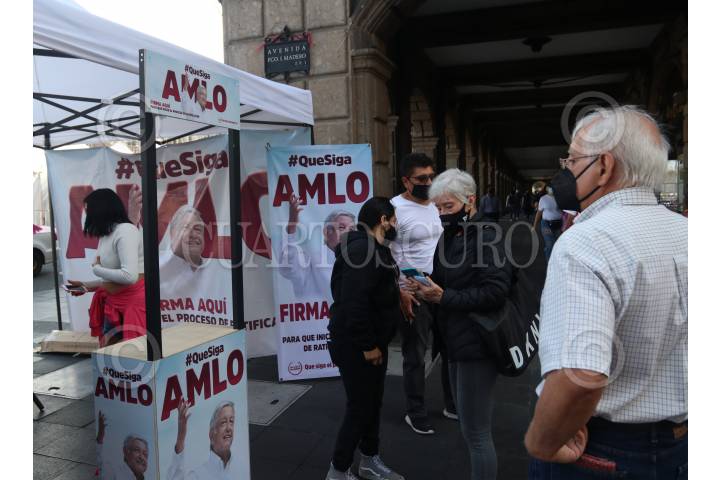 CIUDAD DE MÉXICO, 11NOVIEMRE2021. - Simpatizantes de Morena reúnen firmas en módulos para la revocación de mandato de Andrés Manuel López Obrador, presidente de México. Si se reúnen las firmas se podrá votar por revocación de mandato en enero del 2022. FOTO: ANDREA MURCIA /CUARTOSCURO.COM