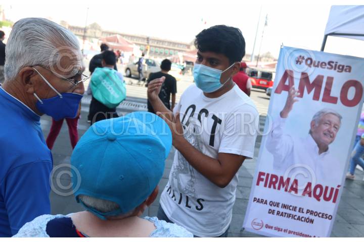 CIUDAD DE MÉXICO, 11NOVIEMRE2021. - Simpatizantes de Morena reúnen firmas en módulos para la revocación de mandato de Andrés Manuel López Obrador, presidente de México. Si se reúnen las firmas se podrá votar por revocación de mandato en enero del 2022. FOTO: ANDREA MURCIA /CUARTOSCURO.COM