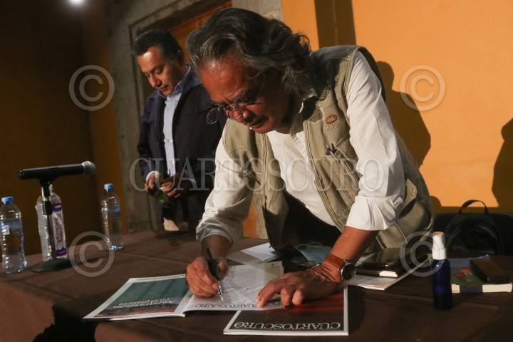 CIUDAD DE MÉXICO, 11NOVIEMBRE2021. - José Manuel Pacheco, director de Ojos que Sienten; Pedro Valtierra, director de la Agencia CUARTOSCURO, y Miguel Angel León, director de ArteSano Buró Cultural, encabezaron la presentación de la Revista Cuartoscuro número 170, realizado en el Centro de la Imagen. FOTO: GRACIELA LÓPEZ /CUARTOSCURO.COM