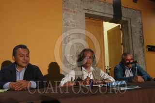 CIUDAD DE MÉXICO, 11NOVIEMBRE2021. - José Manuel Pacheco, director de Ojos que Sienten; Pedro Valtierra, director de la Agencia CUARTOSCURO, y Miguel Angel León, director de ArteSano Buró Cultural, encabezaron la presentación de la Revista Cuartoscuro número 170, realizado en el Centro de la Imagen. FOTO: GRACIELA LÓPEZ /CUARTOSCURO.COM
