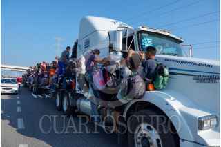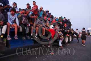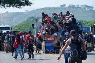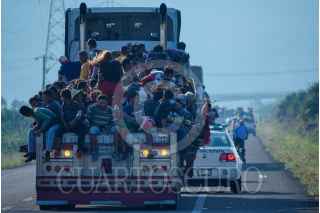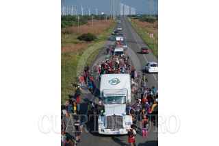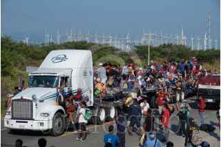 LA VENTOSA, OAXACA, 12NOVIEMBRE2021.- La Caravana Migrante continúa su paso por el Itsmo de Tehuantepec, ahí las personas aprovecharon aventón en diversos camiones de carga. FOTO: GALO CAÑAS/CUARTOSCURO.COM