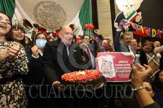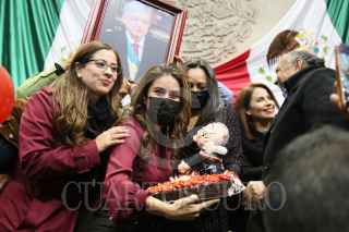 CIUDAD DE MÉXICO, 13NOVIEMBRE2021.- Diputados de la bancada de Morena llevaron pastel en conmemoración del festejos del cumpleaños 68 de Ándrés Manuel López Obrador, presidente de México, durante la Sesión Ordinaria en el pleno de la Cámara de Diputados. FOTO: CORTESÍA MORENA/CUARTOSCURO.COM