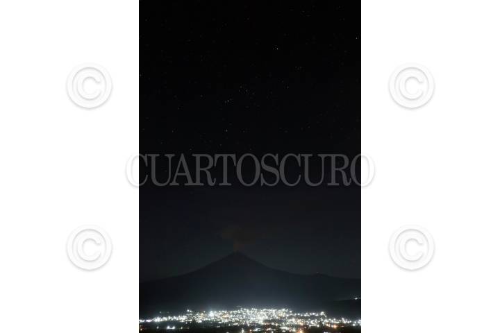 SAN NICOLAS DE LOS RANCHOS, PUEBLA, 13NOVIEMBRE2021. Según el ultimo reporte del Centro Nacional de Prevención de Desastres, sobre la actividad del volcán Popocatépetl, este ha tenido en las ultimas 24 horas, trece exhalaciones, algunas acompañadas de vapor de agua y gases. Imagen tomada desde el cerro Teoton a 2700 msnm. Los habitantes de este municipio aseguran que el cerro Teoton (Ídolo) alberga una pirámide parecida a la de Cholula. FOTO: MARGARITO PÉREZ RETANA/CUARTOSCURO.COM