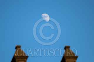 CIUDAD DE MÉXICO, 13NOVIEMBRE2021.- La luna en su fase cuarto creciente se asoma entre las columnas de Palacio Nacional. FOTO: GRACIELA LÓPEZ /CUARTOSCURO.COM
