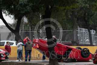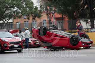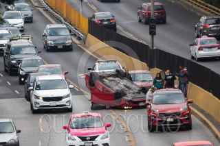 CIUDAD DE MÉXICO, 14NOVIEMBRE2021.- Una auto rojo volcó sobre el Circuito Interior, a la altura de Manuel Carpio con dirección hacia el AICM, no se reportaron lesionados. FOTO: MOISÉS PABLO/CUARTOSCURO.COM