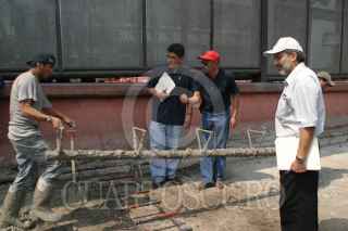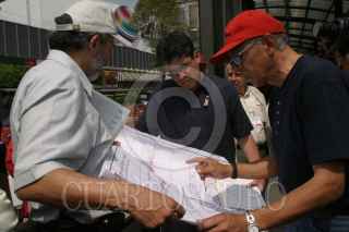 MEXICO, D.F. 22OCTUBRE2006.- El asambleista Tomás Pliego, Guillermo Calderón Aguilera, director general del metrosbus y Mario Zapeda, director de obras durante el recorrido por las estaciones del metrobus Tetaro de los Insurgentes y Felix Cuevas que se encuentran cerradas a los usuarios debido a que el carril confinado se encuntra en pavimentación. FOTO: NELLY SALAS/CUARTOSCURO.COM