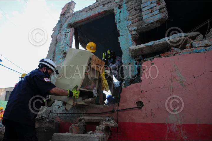 CIUDAD DE MÉXICO, 14NOVIEMBRE2021.- Elementos de bomberos, protección civil y obras de la capital continúan con la remoción de escombros en la vivienda que se derrumbó luego de una explosión a causa de la acumulación de gas que dejó una mujer fallecida y más de una decena de heridos que continúan hospitalizados. FOTO: DANIEL AUGUSTO /CUARTOSCURO.COM