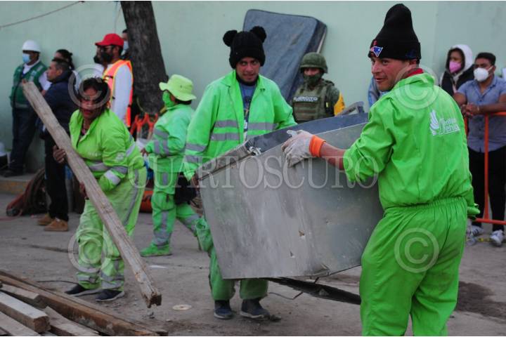 CIUDAD DE MÉXICO, 14NOVIEMBRE2021.- Elementos de bomberos, protección civil y obras de la capital continúan con la remoción de escombros en la vivienda que se derrumbó luego de una explosión a causa de la acumulación de gas que dejó una mujer fallecida y más de una decena de heridos que continúan hospitalizados. FOTO: DANIEL AUGUSTO /CUARTOSCURO.COM