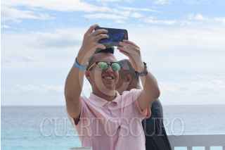 CANCÚN, QUINTANA ROO, 25NOVIEMBRE2021. - Turistas disfrutan de la vista en la playa delfines en este puente vacacional apesar del frente frío 8 que se encuentra sobre la Península de Yucatán. FOTO: ELIZABETH RUIZ / CUARTOSCURO.COM