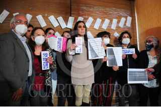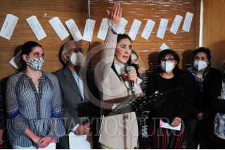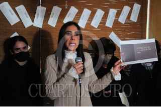 CIUDAD DE MÉXICO, 15NOVIEMBRE2021.- Mariana Moguel, hija de Rosario Robles, quien se encuentra presa en el reclusorio de Santa Martha, ofreció una conferencia de prensa donde, acompañada de varios integrantes de su familia, anunció una serie de movilizaciones pacíficas para exigir se haga justicia en el caso de su madre y le otorguen su libertad. FOTO: DANIEL AUGUSTO /CUARTOSCURO.COM