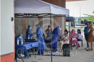 MÉRIDA, YUCATÁN, 13NOVIEMBRE2021.- Continúa el proceso de registro de los asistentes en el Centro de Convenciones y Exposiciones Yucatán previas al inicio del Tianguis Turístico Mérida 2021. FOTO: MARIO JASSO/CUARTOSCURO.COM