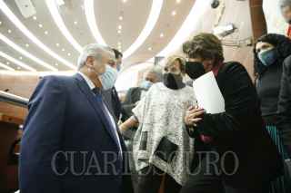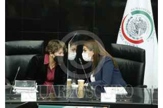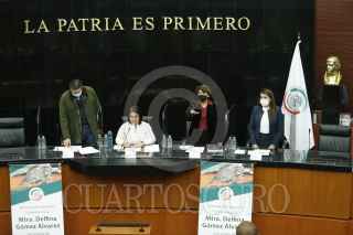 CIUDAD DE MÉXICO, 16NOVIEMBRE2021.- Delfina Gómez, titular de la Secretaría de Seguridad Pública (SEP), compareció en el Senado de la República en el marco de la Glosa del Tercer Informe de Gobierno. Acompañaron en la mesa Antares Guadalupe Vázquez Alatorre, presidenta de la Comisión de Educación; y María Guadalupe Saldaña, senadora panista. FOTO: CUARTOSCURO.COM