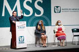 CIUDAD DE MÉXICO, 16NOVIEMBRE2021.- El Instituto Mexicano del Seguro Social (IMSS) profesionalizó a su personal Técnico en Atención y Orientación al Derechohabiente (TAOD) para “hacer del sentido humano una forma de llevar a cabo un trabajo” y que el Instituto tenga un nuevo rostro con dimensión social en la atención a sus derechohabientes, afirmó el director general de este Instituto, Maestro Zoé Robledo. En el marco de la ceremonia conmemorativa por el 44 Aniversario del Día del Personal TAOD, señaló que para fortalecer a este personal se implementó un Servicio Profesional donde el mérito fue la ruta de acceso a puestos de mayor jerarquía, así como la necesidad de impulsar procesos de mejora continua y evaluación de calidad homologados en todos los Módulos Atención. FOTO: IMSS/CUARTOSCURO.COM