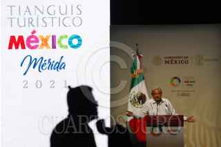 MÉRIDA, YUCATÁN, 16NOVIEMBRE2021.- En el Centro Internacional de Congresos, el presidente Andrés Manuel López Obrador, encabezó la inauguración de la 45 edición del Tianguis Turístico México 2021 con el lema "Como México no hay dos". En esta edición se destaca por ser el primer Tianguis incluyente en su historia. Contará con la presencia de 32 entidades federativas, 936 empresas y 40,048 prestadores de servicios, así como un total de 56,543 citas de negocios preestablecidas y durará hasta el 19 de noviembre. FOTO: MARTÍN ZETINA/CUARTOSCURO.COM