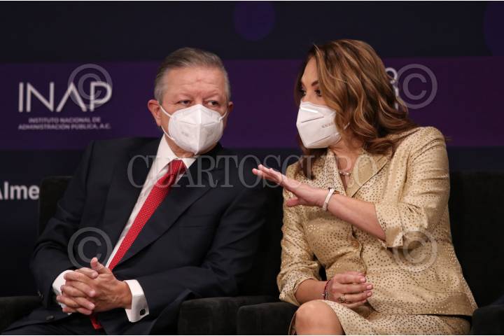 CIUDAD DE MÉXICO, 17NOVIEMBRE2021.- Arturo Zaldívar Lelo de Larrea, Ministro presidente de la Suprema Corte de Justicia de la Nación; Blanca Lilia Ibarra Cadena, comisionada presidenta del INAI; Diego Sinhue Rodríguez Vallejo, Gobernador del estado de Guanajuato; Norma Julieta del Río Venegas, comisionada del INAI; David Rogelio Colmenares Páramo, titular de la Auditoría Superior de la Federación (ASF); Luis Miguel Martínez Anzures, presidente del Consejo Directivo del Instituto Nacional de Administración Pública; y Oscar Mauricio Guerra Ford, comisionado del INAI, durante la ceremonia a la innovación en transparencia 2021 del INAI. FOTO: ANDREA MURCIA /CUARTOSCURO.COM