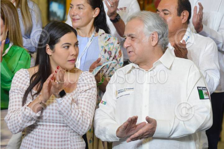 MÉRIDA, YUCATÁN, 17NOVIEMBRE2021.- Mauricio Vila Dosal, gobernador de Yucatán; Miguel Torruco, secretario de Turismo, Michelle Fridman, secretaria de Fomento Turístico de Yucatán, e Indira Vizcaíno, gobernadora de Colima, encabezaron el corte de listón del Tianguis Turístico Mérida 2021 celebrado en el Centro de Exposiciones y Convenciones Siglo XXI. FOTO: MARIO JASSO/CUARTOSCURO.COM