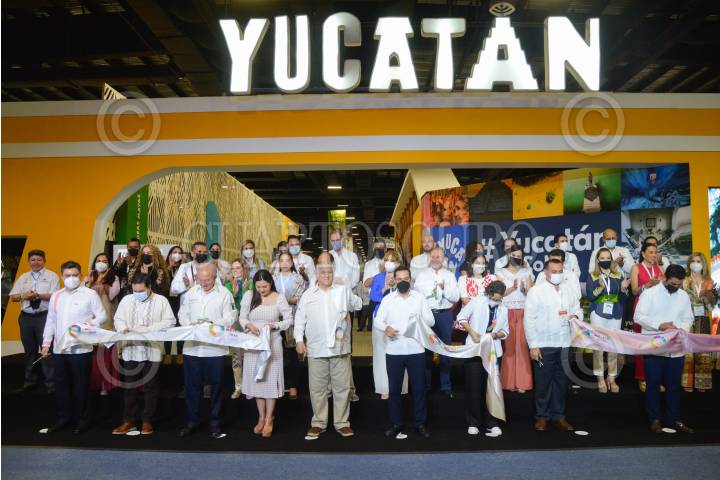 MÉRIDA, YUCATÁN, 17NOVIEMBRE2021.- Mauricio Vila Dosal, gobernador de Yucatán; Miguel Torruco, secretario de Turismo, Michelle Fridman, secretaria de Fomento Turístico de Yucatán, e Indira Vizcaíno, gobernadora de Colima, encabezaron el corte de listón del Tianguis Turístico Mérida 2021 celebrado en el Centro de Exposiciones y Convenciones Siglo XXI. FOTO: MARIO JASSO/CUARTOSCURO.COM