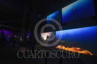 CALIMAYA, ESTADO DE MÉXICO, 17NOVIEMBRE2021.- Napoleón Filliat Ordóñez, Director General de CEPANAF, Alonso Rodríguez de la Parra explorador subacuático y Ernesto Paulsen, director de Servicios de Aventura y Entretenimiento México, y creadores de “Mares México” durante la inauguración de una nueva experiencia multisensorial inmersa llamada “Mares México” instalada en el Pabellón Tecnológico en el Parque Ecológico Zacango, en donde los visitantes podrán disfrutar de fotografías y videos de áreas naturales protegidas en México así como un pabellón artístico en donde se utilizaron botellas de PET, buscan dar a conocer los océanos y su importancia así como las amenazas que existen y cómo se puede ser parte de para proteger los mares. FOTO: CRISANTA ESPINOSA AGUILAR /CUARTOSCURO.COM