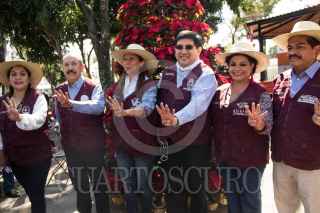 CIUDAD DE MÉXICO. 17NOVIEMBRE2021.- Los alcaldes de Morena, Berenice Hernandez, Armando Quintero, Evelyn Salgado, Jose Carlos Acosta, Clara Brugada y Francisco Chiguil, iniciaron la reactivación económica con la venta de flores de Nochebuena, en esta demarcación, con un evento conjunto en Xochimilco. FOTO: VICTORIA VALTIERRA/CUARTOSCURO.COM