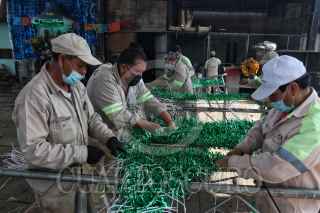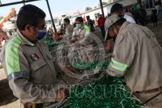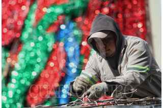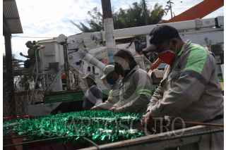 CIUDAD DE MÉXICO, 18NOVIEMBRE2021.- Son al menos 120 empleados los que trabajan en el taller de alumbrado público y que en este momento se encuentran armando el mosaico decorativas de las fiestas decembrinas con materiales reciclados de otros años. FOTO: ANDREA MURCIA /CUARTOSCURO.COM