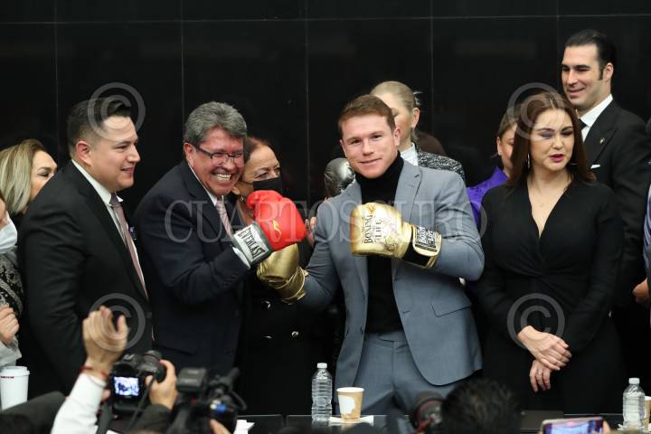 CIUDAD DE MÉXICO, 18NOVIEMBRE2021.- Eddy Reynoso, entrenador de Saúl "Canelo" Álvarez, recibió un reconocimiento en el Senado de la República, el cual estuvo encabezado por Ricardo Monreal Ávila, Presidente de la Jucopo. El llamado Canelo Álvarez asistió como invitado y ahí convivió con los senadores presentes. FOTO: CUARTOSCURO.COM
