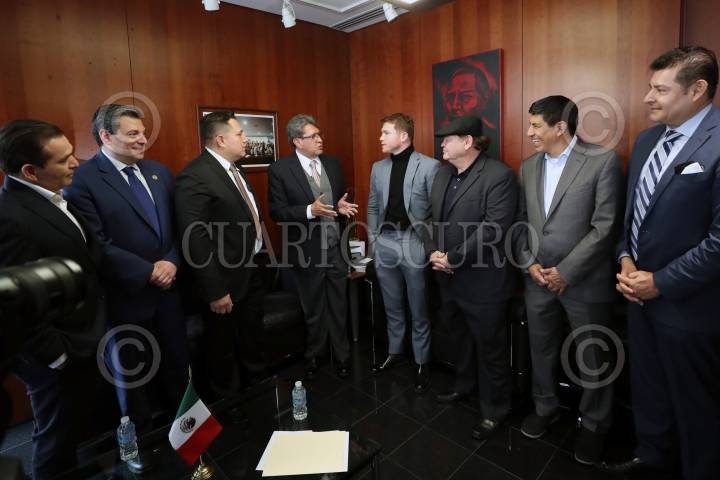 CIUDAD DE MÉXICO, 18NOVIEMBRE2021.- Eddy Reynoso, entrenador de Saúl "Canelo" Álvarez, recibió un reconocimiento en el Senado de la República, el cual estuvo encabezado por Ricardo Monreal Ávila, Presidente de la Jucopo. El llamado Canelo Álvarez asistió como invitado y ahí convivió con los senadores presentes. FOTO: CUARTOSCURO.COM