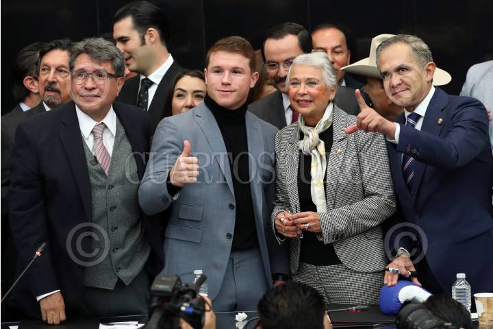 CIUDAD DE MÉXICO, 18NOVIEMBRE2021.- Eddy Reynoso, entrenador de Saúl "Canelo" Álvarez, recibió un reconocimiento en el Senado de la República, el cual estuvo encabezado por Ricardo Monreal Ávila, Presidente de la Jucopo. El llamado Canelo Álvarez asistió como invitado y ahí convivió con los senadores presentes. FOTO: CUARTOSCURO.COM