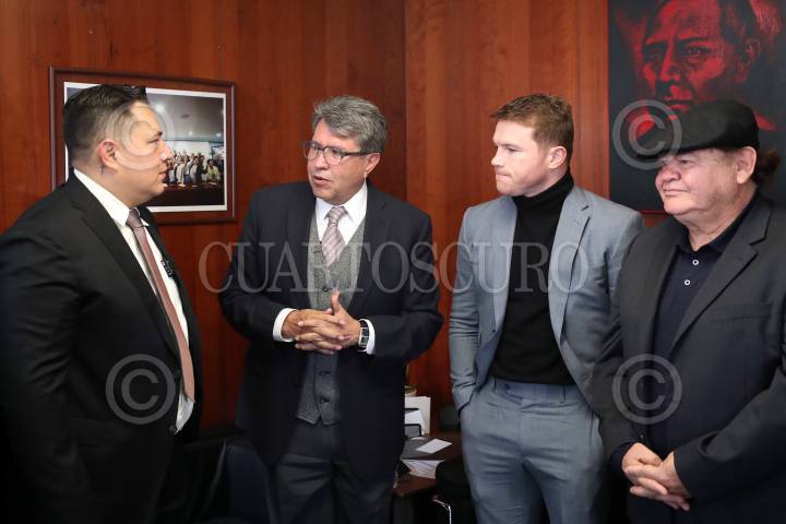 CIUDAD DE MÉXICO, 18NOVIEMBRE2021.- Eddy Reynoso, entrenador de Saúl "Canelo" Álvarez, recibió un reconocimiento en el Senado de la República, el cual estuvo encabezado por Ricardo Monreal Ávila, Presidente de la Jucopo. El llamado Canelo Álvarez asistió como invitado y ahí convivió con los senadores presentes. FOTO: CUARTOSCURO.COM