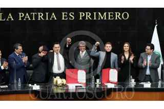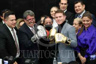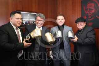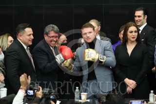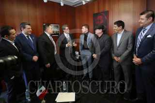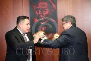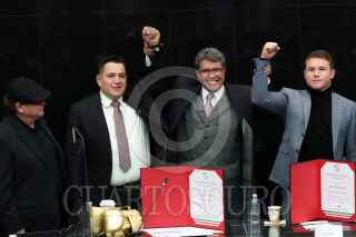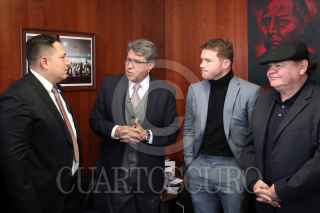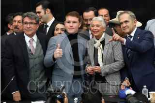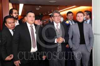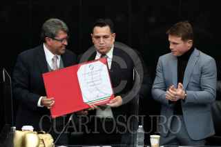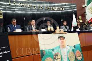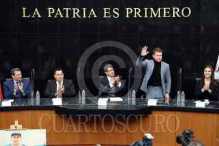 CIUDAD DE MÉXICO, 18NOVIEMBRE2021.- Eddy Reynoso, entrenador de Saúl "Canelo" Álvarez, recibió un reconocimiento en el Senado de la República, el cual estuvo encabezado por Ricardo Monreal Ávila, Presidente de la Jucopo. El llamado Canelo Álvarez asistió como invitado y ahí convivió con los senadores presentes. FOTO: CUARTOSCURO.COM